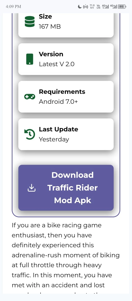 Fixing some common problems in 94fbr Traffic Rider Mod Apk