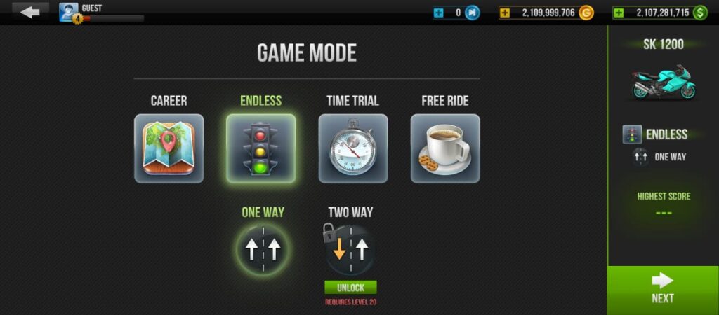 When you open the Traffic Rider Mod Apk, there will be 32 bikes awaiting you to ride. Select any bike you want; there will be no restrictions on bikes. You don’t need to spend money to unlock the bikes; you are using a mod apk, so all bikes will be unlocked for you.